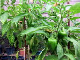 スビにトマト、パプリカ植えていますが、そのパプリカ、赤、オレンジ、黄色に、なるまで、すごーく時間がかかります。それで、上手に、できないので、若いグリーン色した、パプリカを、ピーマンとして、収穫しています。